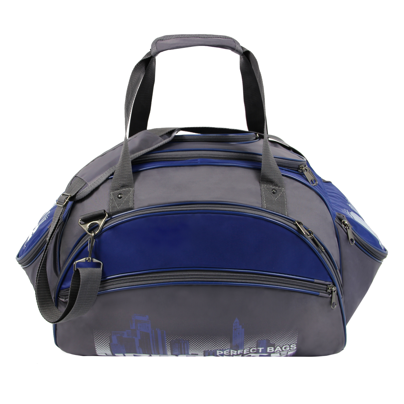Дорожно-спортивная сумка средних размеров предназначена для транспортировки личных вещей. Сумка изготовлена из прочной водоотталкивающей ткани. Имеется одно объёмное отделение, два каскадных кармана на передней стенке, два боковых кармана на молнии, один карман на верхнем клапане. Внутренние швы окантованы, фурнитура металлическая повышенной прочности. Ручки укреплены хольнитенами, оснащены ручкодержателем. В комплект входит съёмный регулируемый ремень с наплечником.